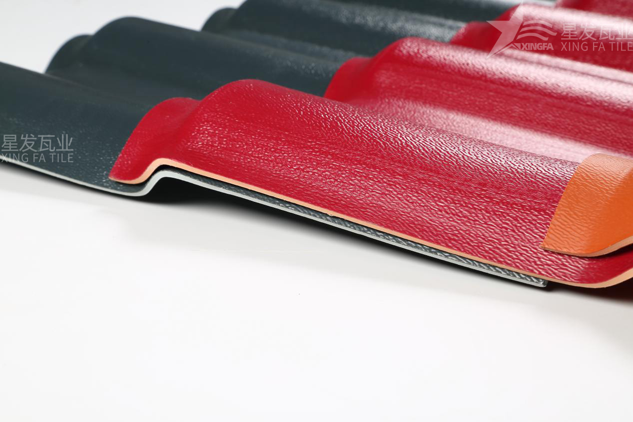 合成樹脂瓦通常由兩層構成:上層為抗紫外線和抗老化層,下層為抗沖擊和耐腐蝕層。上層一般由ASA樹脂(丙烯酸酯-丙烯腈-苯乙烯共聚物)制成,具有優(yōu)異的耐候性和抗紫外線性能,可以有效延長合成樹脂瓦的使用壽命。下層則由PVC(聚氯乙烯)和其他補助材料組成,可以提供合成樹脂瓦的抗沖擊性、耐腐蝕性和其他物理性能。通常,這兩層是通過共擠合成的方式制成,以確保它們的緊密結合和性能協(xié)調。