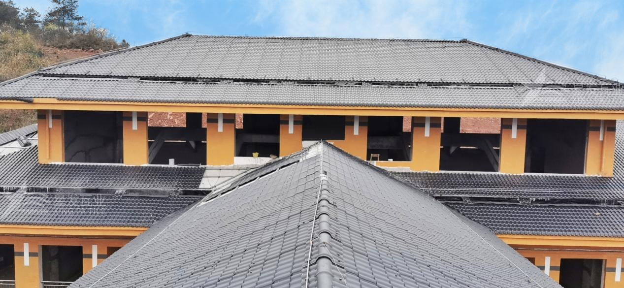 其次,合成樹脂瓦的結構設計也有助于提供卓越的隔音效果。瓦片之間的搭接和連接非常緊密,形成一個堅固的整體。這種結構可以有效地阻止聲音的傳播,減少噪音的穿透。合成樹脂瓦的單片面積較大,安裝固定簡單,只要搭接合理,安裝好之后就形成了一個完美的屋面系統,不僅能夠提供優異的防水和防風效果,還能有效地隔離外界噪音,為居住者創造一個寧靜的居住環境。
