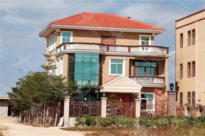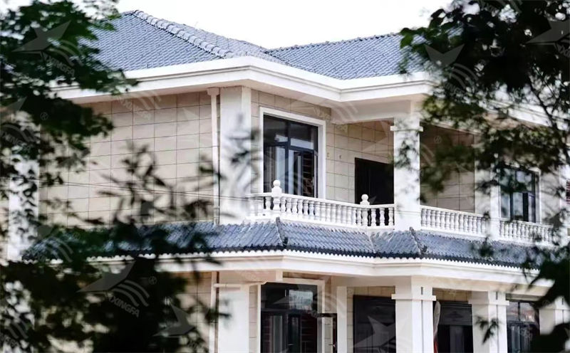 合成樹脂瓦的色盤中,有棗紅、桔紅、磚紅、金色、藍色、灰色、墨綠等多種選擇,無論是現代簡約還是經典復古風格,都能找到適合的配色方案。因此,在建筑舞臺上,合成樹脂瓦正在以藝術品的形式展現自己的魅力。