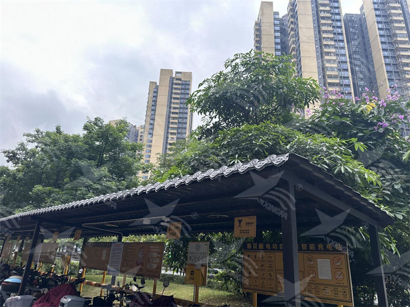 首先,樹脂瓦以其優越的性能脫穎而出。它不僅輕質高強,而且具有良好的耐候性和抗紫外線能力,能夠長期承受日曬雨淋而不易老化或褪色。這種材料還具有良好的隔熱性能,能夠在炎熱的夏季有效降低電動車棚內部溫度,為電動車提供一個涼爽的停放環境。