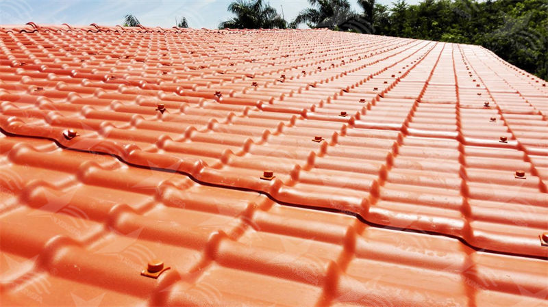 此外,樹脂瓦的輕質設計也是一大優勢。相比傳統的隔熱磚和水泥瓦,樹脂瓦重量更輕,不會增加屋頂的承重負擔,適用于各種建筑結構。其優良的耐候性和耐腐蝕性,使其使用壽命更長,減少了維護和更換的頻率。